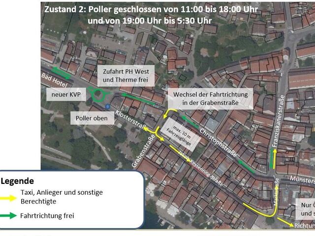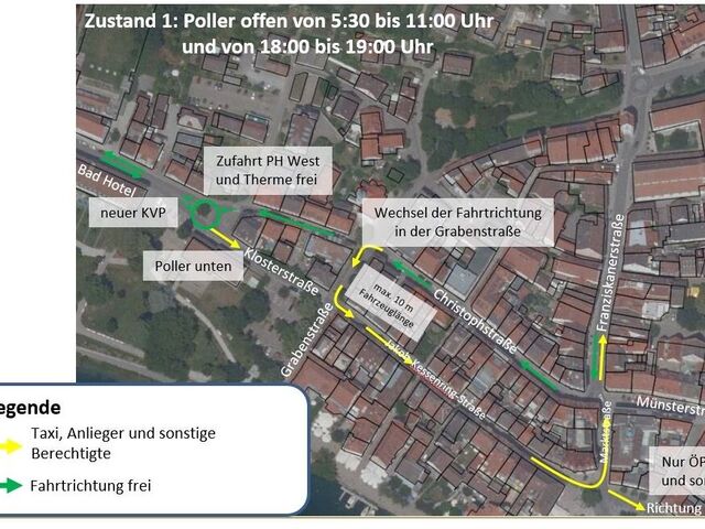 Besonders hervorzuheben ist die Schaffung eines verkehrsberuhigten Bereichs, der nicht nur mehr Aufenthaltsqualität für die Kloster- und Jakob-Kessenring-Straße bietet, sondern auch Radfahrern ermöglicht, in beiden Richtungen zu fahren.