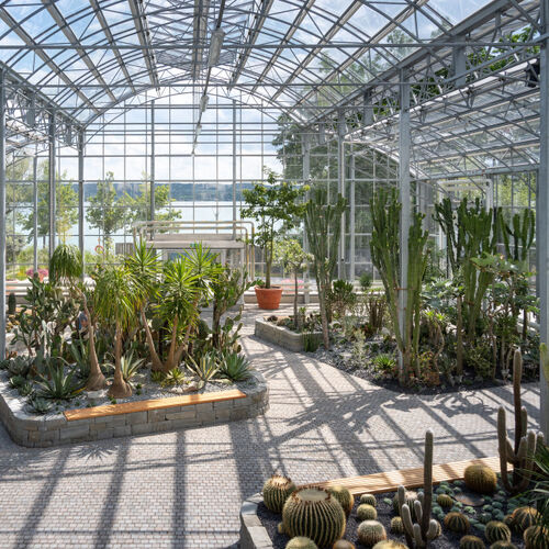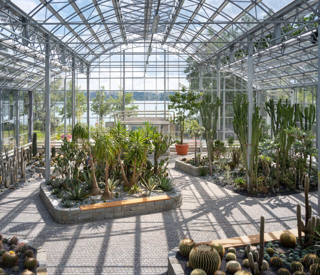 Den rund 1.000 ausgestellten Kakteen und Sukkulenten stehen rund 250 Quadratmeter Beetfläche zur Verfügung. Die exotischen Pflanzen sind nach ihrer geografischen Herkunft in den jeweiligen Beeten gruppiert.