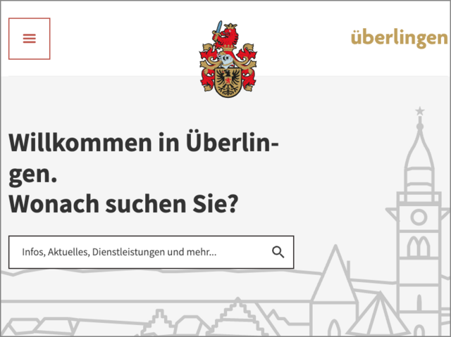Oben in der Mitte der Internet·seite ist das Stadt·wappen von Überlingen zu sehen.
