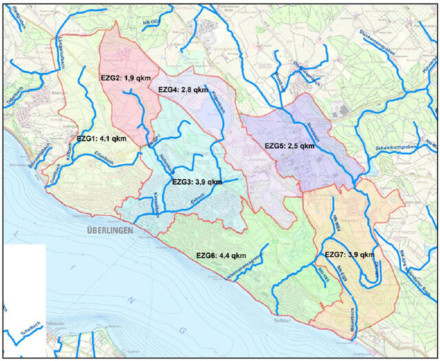 Eine detaillierte Karte der Einzugsgebiete (EZG) als PDF-Datei finden Sie hier.